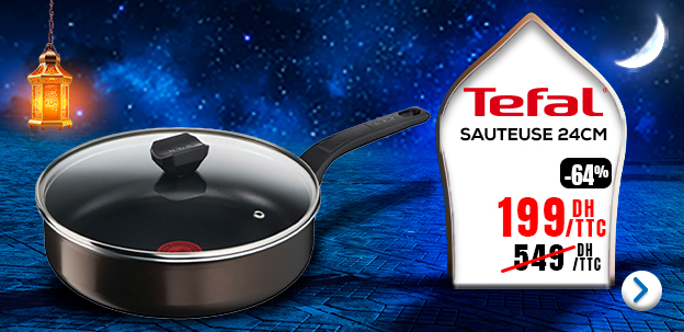 - TEFAL SAUTEUSE 24CM EXPERTIS...Nouveau PromoPrix normal 549 DHPrix Spécial 199 DH -63%En rupture de stock